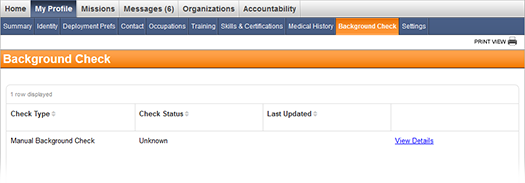 To view the status of your background check, go to My Profile: Background Check. The following page opens.